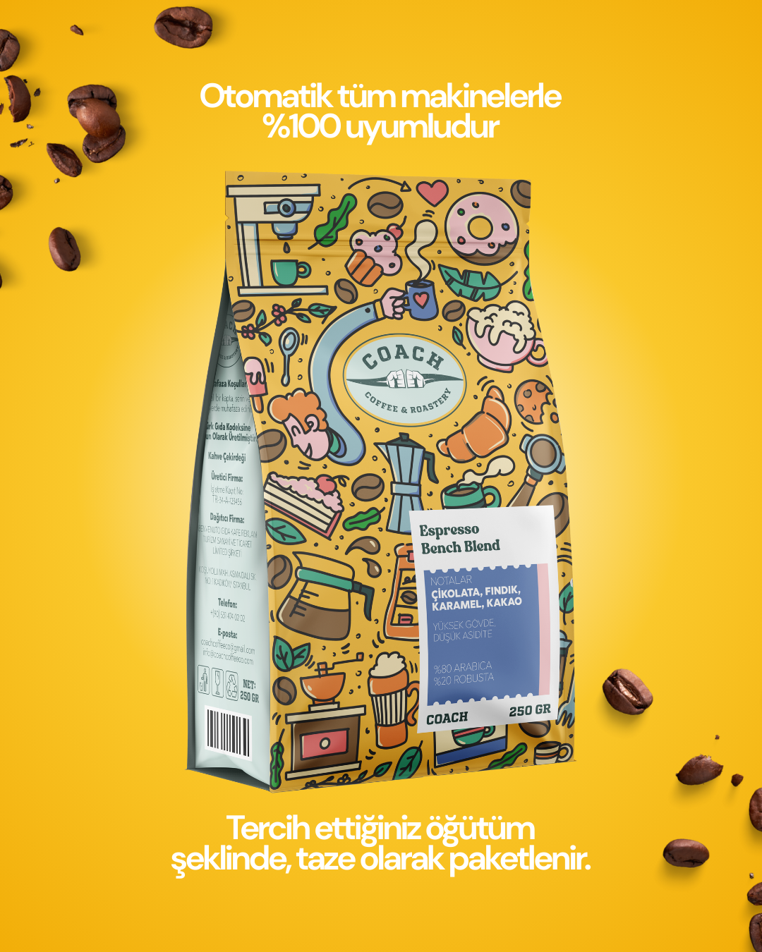 - Harman: Ethiopia Sidamo & Endonezya Bali yeşil çekirdekleri, özenle espresso için kavrulmuştur.
